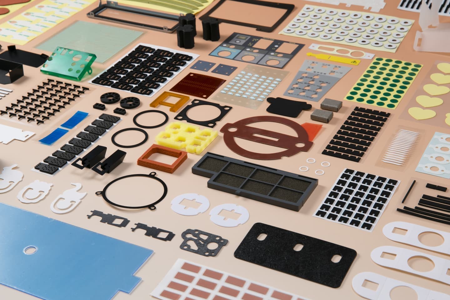 ルミラー・カプトン・その他の薄いフィルムを精密打抜き加工し、主にモバイル製品向け絶縁シートやスペーサー用途で使用されております。