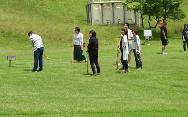 またまた梅雨時に旅行に行くので悪いのですが、雨が降ったらなにするの?みたいな場所にいくので、前日まで天気予報とにらめっこ!でも日頃の行いが良いせいか?初日は梅雨の中休みでめっちゃいい天気(良すぎてびっくりしました)予定をしていたグランドゴルフ・ゴルフ・テニス・釣り・エステ・卓球・陶芸・バーベキュー・豚のショー鑑賞・ソーセージ作り すべて滞りなくできました。一部の人は、部屋に全自動卓を持ち込ませての麻雀大会・・・ちょっと詰めすぎて疲れてしまいました。※来年からは、営業部VS製造部VS品証部 対抗は改め ランダムにチーム分けしてゲームをしていこうと思います。
