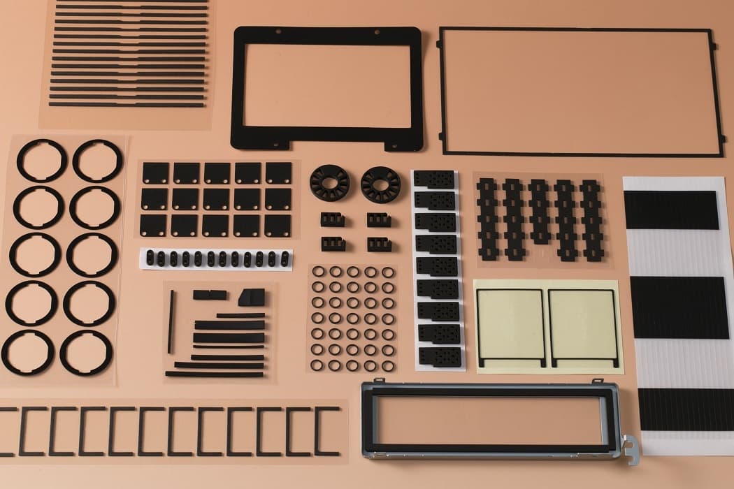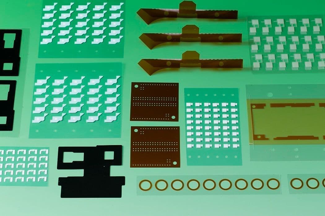 ルミラー・カプトン・その他の薄いフィルムを精密打抜き加工し、主にモバイル製品向け絶縁シートやスペーサー用途で使用されております。