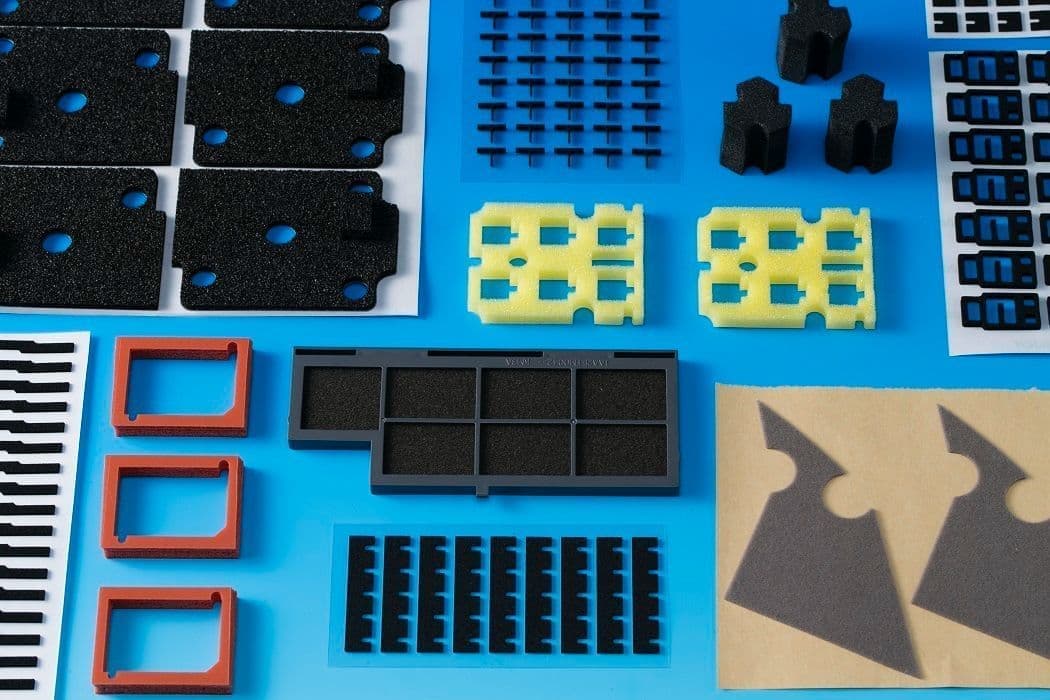 ウレタン・CR・EPT・シリコンスポンジは、クッション、防振、フィルター、防音、その他用途で幅広く使用されております。